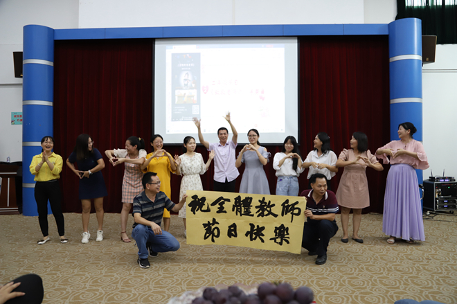 9月10日下午,全體教師聚集學(xué)校階梯式,進(jìn)行了短暫的慶祝教師節(jié)活動(dòng)。簡(jiǎn)單的下午茶,臨時(shí)排練的小節(jié)目,讓現(xiàn)場(chǎng)到處都洋溢著幸福、快樂(lè)的節(jié)日氣息!