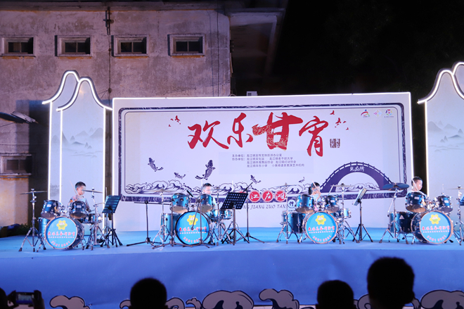 我?;泟±蠋熀托⊙輪T們給甘竹群眾帶來了《趙子龍之甘露寺》、《思凡》等11個粵曲節(jié)目。除了粵曲,我校小鼓手們還帶來了《鼓舞中國》、《改變自己》等4個爵士鼓節(jié)目。星光閃耀,粵韻聲聲,這是華東小學粵劇小演員們的夜晚,也是甘竹人們的夜晚。