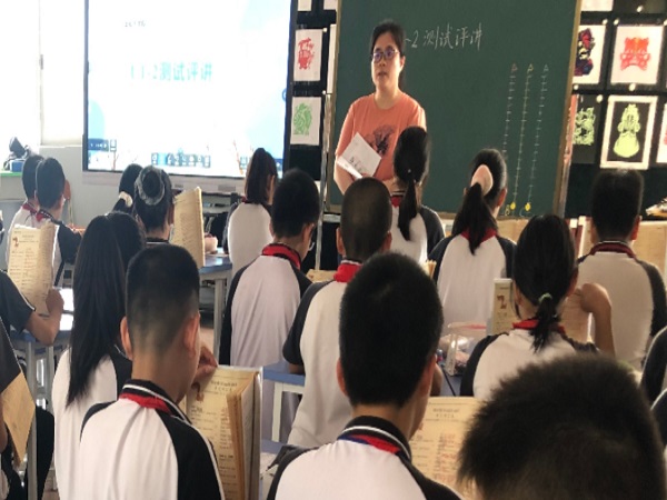 最終,李秋琴老師代表六年級科組為全體英語教師呈現(xiàn)了一節(jié)邏輯清晰有序、師生互動默契自然的評講課。六年級試題題量較大,難度提升,但李老師的知識評講鞭辟入里,又穿插拓展練習,給學生們充足的小組合作、鍛煉展示的機會,使得學生們個個聚精會神,積極發(fā)言,緊跟李老師的教學節(jié)奏,盡享知識帶來的樂趣與成就感。 李老師評講細致全面 學生們聚精會神,認真做筆記 隨后,周校對本節(jié)課進行了細致深刻的點評,她贊許了城區(qū)小英人們團結(jié)奮進的精神力量,肯定了李老師扎實的教學功底,也稱譽我們城區(qū)孩子良好的課堂行為習慣。此外,周校更是悉心分享了她們科組評講課的范例,并就如何為孩子們攻堅克難、引導其形成良好的學習積累、自主糾錯、總結(jié)方法經(jīng)驗的學習品質(zhì)提出了寶貴建議,與會教師感觸良多,受益匪淺。 周校細致點評,傾情分享 在盧主任的帶領(lǐng)下,城區(qū)小英人積極落實一次次研討活動,為英語課堂增效,為教學提質(zhì)不斷添磚加瓦!相信,城區(qū)小英人這份執(zhí)著與辛勤,這份團結(jié)與干勁,將為城區(qū)學子們的快樂學習成長注入源源不斷的力量! (撰稿:吳敏瑞 審核:盧倩賢)