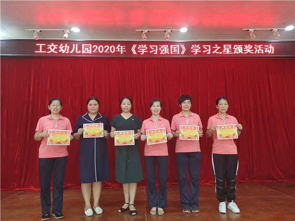 6月30日上午在工交幼兒園黨支部組織委員梁燕芳同志主持下,開展了全園教職工“學(xué)習(xí)強(qiáng)國(guó)”平臺(tái)學(xué)習(xí)評(píng)比表彰活動(dòng)。進(jìn)一步激發(fā)教職工主動(dòng)學(xué)、深入學(xué)“學(xué)習(xí)強(qiáng)國(guó)”的熱情與動(dòng)力,促使黨員、群眾形成在平臺(tái)上學(xué)習(xí)的日常習(xí)慣和行為自覺,促進(jìn)廣大黨員、群眾共同進(jìn)步。會(huì)上,首先公布了每位教師的學(xué)習(xí)積分及排名情況,并依此評(píng)選出一、二、三等獎(jiǎng)。由柯英麗書記為獲獎(jiǎng)教師頒發(fā)了獎(jiǎng)狀。