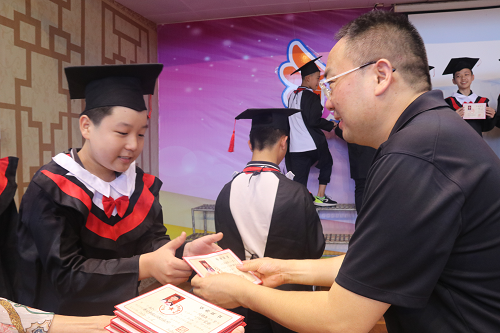 何小祥校長(zhǎng)給孩子們頒發(fā)畢業(yè)證
