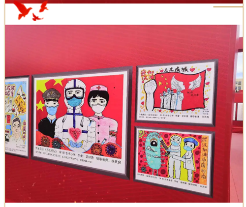 永豐小學黨支部書記吳凡組織全體黨員來到了展覽區(qū),一起參觀了抗疫工作剪影、抗疫英雄剪影和師生的抗疫主題書畫。偌大的展區(qū),向大家傳達著戰(zhàn)勝疫情的堅定信念和頑強斗志。