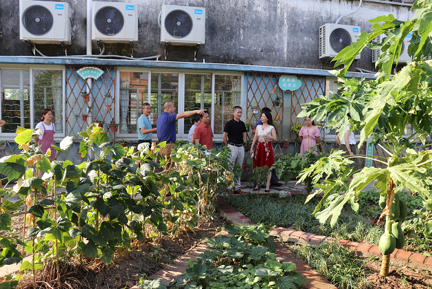 專家們在學(xué)校行政的陪同下巡視我校的生態(tài)實踐樂園