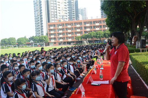接下來是何柳森校長發(fā)言致辭,何校長對奮揚全體師生寄予新學期的祝福和期望。何校長提到,本學年是特殊的一年,我們奮揚學子搬遷至匯賢實驗學校要學會感恩,感謝匯賢實驗學校提供優(yōu)美的學習環(huán)境,感謝搬遷中為奮揚學子默默付出的老師和義工家長們。最后她引用疫情中逆風前行的醫(yī)護人員們的故事,告訴我們:新學期,我們奮揚人,也要逆風前行,向陽而生!