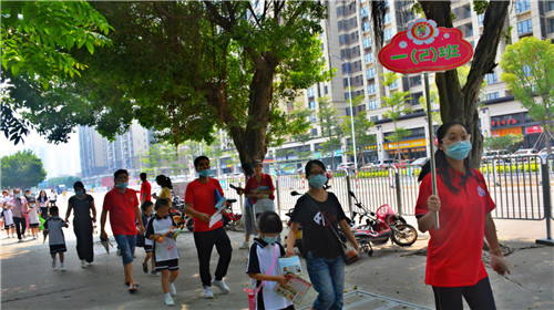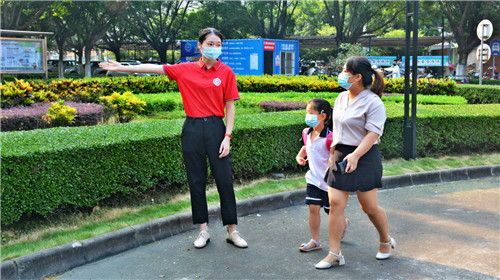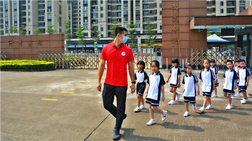 會議結(jié)束后,家長們回到孩子所在班級教室。各班班主任與各科任老師向家長講述本學(xué)科特點(diǎn)與教學(xué)要求,就孩子學(xué)習(xí)方面的問題進(jìn)行融洽地交流。同時,孩子們在副班主任老師的帶領(lǐng)下喝水、如廁,熟悉校園環(huán)境與上學(xué)、放學(xué)路線,并進(jìn)行集隊(duì)訓(xùn)練。最后,在老師們的帶領(lǐng)下,家長與孩子們實(shí)地演習(xí)了一次家長接送的相關(guān)事宜。