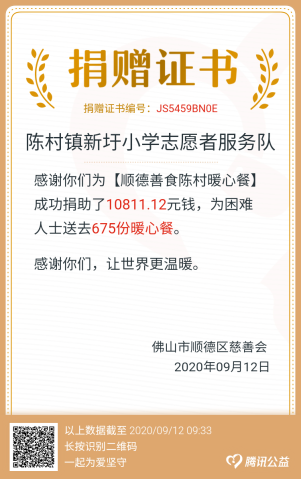 “99公益日”活動時間為每年9月7日-9月9日,在這三天時間里,新圩小學(xué)家長志愿者服務(wù)隊積極響應(yīng)陳村慈善會暖心餐項目,在“99公益日平臺”的捐助倡議,致力為陳村鎮(zhèn)困難長者、殘疾人解決買菜難、煮飯難的問題、帶去生活便利、減輕經(jīng)濟(jì)負(fù)擔(dān)。