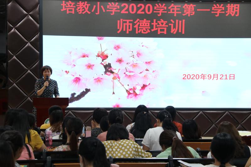 陶行知先生曾經(jīng)說過:“學(xué)高為師,德高為范”。良好的師德,高尚的師風(fēng)是做好教育的核心。為了不斷提高學(xué)校教職工的師德修養(yǎng),2020年9月21日,培教小學(xué)電教室舉辦了一場師德培訓(xùn)會,本次培訓(xùn)由何雪文副書記主持。