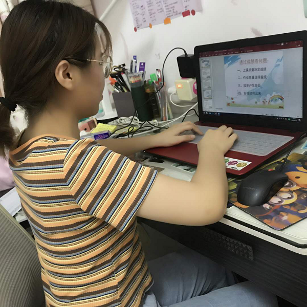 班主任認(rèn)真地做家長會前的準(zhǔn)備工作