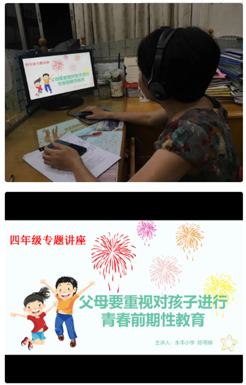 四年級(jí)由陳帶娣老師圍繞開展“目前家庭性教育存在的問題”和“進(jìn)行青春前期性教育的具體技巧”開展《父母要重視對(duì)孩子進(jìn)行青春前期性教育》年級(jí)主題講座培訓(xùn)。