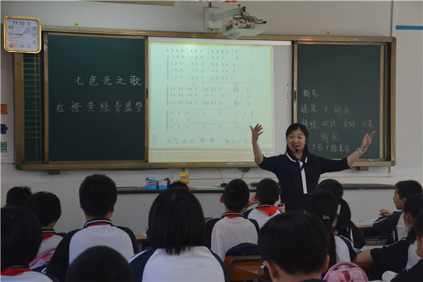首先,評估專家“推門”深入課堂聽課,隨機(jī)聽取了語文、數(shù)學(xué)、音樂等課堂教學(xué),深入了解教師教學(xué)和學(xué)生課堂學(xué)習(xí)的開展情況。語文課上,梁健欣老師結(jié)合學(xué)?!皩W(xué)導(dǎo)練”互助教學(xué)模式展示小組互助學(xué)習(xí),充分發(fā)揮學(xué)生的學(xué)習(xí)主體性,創(chuàng)設(shè)以生為主的互助課堂;數(shù)學(xué)課上,張綺雯老師創(chuàng)設(shè)精彩的足球比賽情境,放手讓學(xué)生以小組為單位進(jìn)行探究、討論、展示,充分展示了“學(xué)導(dǎo)練”互助教學(xué)課堂;音樂課上,肖曉虹老師引導(dǎo)學(xué)生圍繞“彩虹”的特點(diǎn),通過猜謎語、七色光的描述、伴唱、二聲部的演唱等環(huán)節(jié),與學(xué)生們共同演唱了“七色光之歌”,滲透積極向上的陽光教育,體現(xiàn)了奮揚(yáng)學(xué)校“讓每一個生命都沐浴陽光”的辦學(xué)理念。教師的循循善誘,活躍的課堂氣氛、學(xué)生們自信而大方的表現(xiàn),給評估組專家留下了深刻的印象。