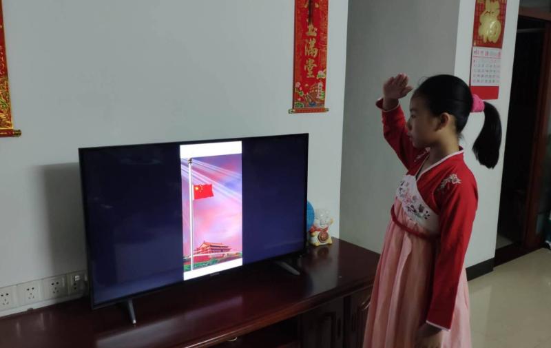在家里向國旗敬禮