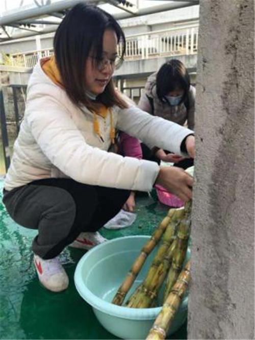 早上8點半,參加活動的老師來到仕版“做回農(nóng)夫”公益蔬果園,在冬日暖陽的照射下,黨團教師們擼起袖子削甘蔗,洗馬蹄,制作馬蹄蔗水。