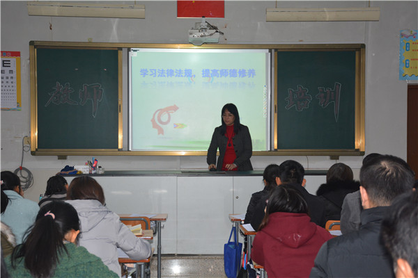為進(jìn)一步增強(qiáng)教師的法律法規(guī)意識,讓教師們知法、懂法、守法、用法,做到依法執(zhí)教,同時懂得用法律法規(guī)保護(hù)學(xué)生以及自身的合法權(quán)益,12月30日,仕版奮揚(yáng)學(xué)校德育處梁煒琴副校長給全體教師上了一堂“學(xué)習(xí)法律法規(guī),提高師德修養(yǎng)”的師德專題培訓(xùn)課。