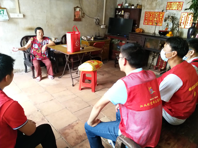 活動當(dāng)天,三位黨員教師早早來到江義村委,在江義村委組織帶領(lǐng)下,他們扛著大米等慰問品來到江義村幾戶獨居老人家中,黨員們圍著老人噓寒問暖,陪老人聊天、講笑話,老人們對大家的到訪非常高興,在與老人的交流過程中,黨員們還詳細詢問了老人的身體狀況以及生活情況,了解他們生活上遇到的困難和難處,設(shè)法幫助解決。