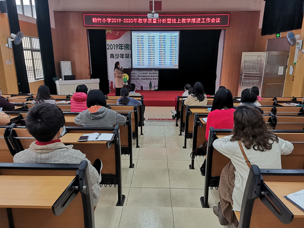4月2日,勒竹小學(xué)里花紅樹碧,一片春意盎然,而此刻電教室里燈火通明,勒竹小學(xué)正在召開針對新型冠狀病毒肺炎疫情防控期間線上教學(xué)工作的推進(jìn)會(huì)。會(huì)議由姚永紅副校長主持,蘇振國校長、教務(wù)處正副主任和各位教師參加會(huì)議。