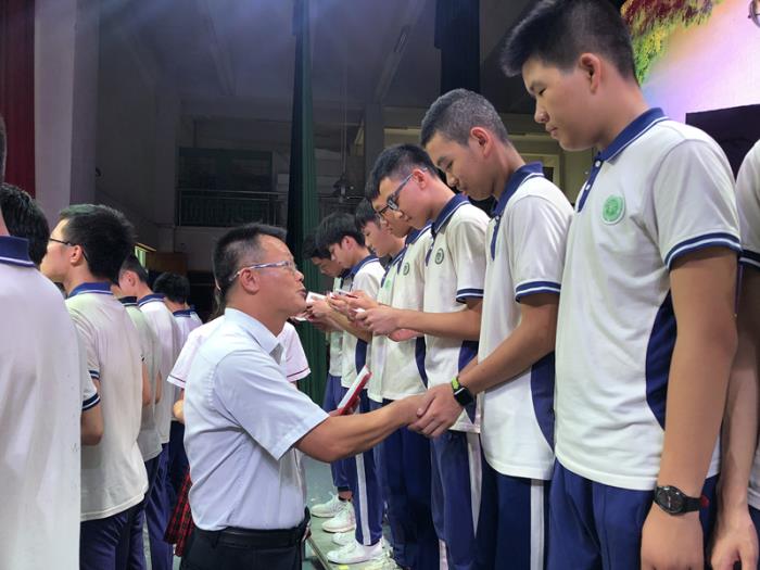 接著, 冉思柱老師代表全體九年級老師在離別之際送上了真誠的祝福。他飽含深情地回憶起跟同學(xué)們在一起的美好時光,并希望大家:讓育賢精神心中永存,用一顆真誠的心向世界播撒溫暖和陽光,堅強勇敢,坦然無愧地看待自己,珍愛平凡而充實的人生!不管走到哪里,都要與好書為友,與摯友相伴,無愧于自己、無愧于生活、無愧于這個激情四射的時代!