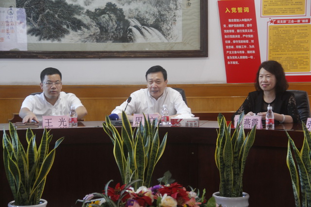 9月10日上午,在第36個教師節(jié)當天,順德區(qū)政協(xié)主席周文、副主席黃燕霞、常委鐘景榮,勒流街道黨工委書記王光,區(qū)教育局副局長張毅,勒流街道教育辦公室主任王家倫等領導一行,到新球中學開展慰問調(diào)研活動,向一線教師致以節(jié)日的問候。新球中學黨總支書記、校長何興球率行政班子成員陪同。 參觀校園 一行人首先參觀了學校的跳繩俱樂部和跆拳道訓練場。何興球校長介紹說,新球中學跳繩俱樂部自成立以來,本著東風小學跳繩精神由新球傳承和以繩育人的理念,體現(xiàn)更高、更快、更強的奧運精神,經(jīng)過長期的不懈的訓練,取得了驕人的成績,現(xiàn)已成為勒流素質(zhì)教育的品牌;跳繩隊將在明年代表廣東省參加全國學生運動會。新球跆拳道隊則實現(xiàn)了連續(xù)七年獲得順德區(qū)團體總分第一名,成為學校社團的品牌,跆拳道隊將代表勒流參加區(qū)運會。參觀領導對學校在素質(zhì)教育方面取得的成績給予了充分的肯定。 隨后,周文等領導走進了初二辦公室,看望一線教師,給他們送上節(jié)日的祝福,給教師代表楊清老師和陳理勤老師獻花并與他們合影留念。 與教師合影 最后,慰問組與我校教師代表在校董室座談。何興球校長作了題為“為打造順德區(qū)品牌優(yōu)質(zhì)初中學校而奮斗”的匯報發(fā)言,從中考成績、學生全面發(fā)展、未來學校發(fā)展的定位與思考等幾個方面,簡要匯報了學校的教育教學各項工作,并結合學校實際提出了學校發(fā)展面臨的困難。他說,學校的宿位不足是制約學校發(fā)展的難題,希望區(qū)委區(qū)政府能加大對學校硬件方面的投入。 街道黨工委書記王光,區(qū)教育局副局長張毅充分肯定了學校的辦學理念和近年來取得的成績。王光書記希望新球中學能百尺竿頭,再進一步,為勒流教育做出新的貢獻。張毅副局長勉勵學校和全體教師把握發(fā)展機遇,加快教育創(chuàng)新,進行績效改革,提升辦學質(zhì)量,走好特色發(fā)展之路。 王光書記發(fā)言 張毅副局長發(fā)言 周文主席作總結發(fā)言。他高度肯定了新球中學2020年超額完成區(qū)教育局下達的指標任務,祝賀新球中學連續(xù)獲得“順德區(qū)初中教學質(zhì)量優(yōu)秀獎”。他贊揚了新球中學在新的領導班子的帶領下,學校有很大提升,教師們的精氣神非常不錯,對學校的發(fā)展定位和未來的思考充滿信心。他透露區(qū)鎮(zhèn)兩級投入將用2~3年時間解決學校宿位不足的問題,未來區(qū)鎮(zhèn)兩級加大對優(yōu)秀教師的獎勵。同時建議鎮(zhèn)街召開教育工作大會,總結過去,表彰先進,給老師鼓勁,再創(chuàng)勒流教育新輝煌! 周文主席作總結發(fā)言 合影留念 文:于華偉 |