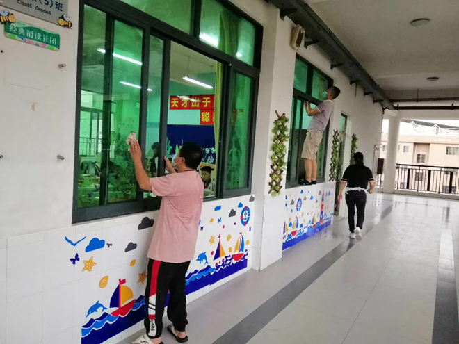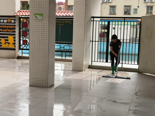 與此同時,學校還安排了清潔人員對學校樓道、活動場所(大堂、操場、草坪)以及各樓層走廊和廁所進行全面清潔、消毒,預防蚊蟲對學生的傷害。