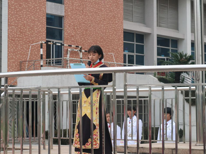 170班新生白瑪拉姆作了主題為“祖國(guó)我為你自豪”的國(guó)旗下發(fā)言,抒發(fā)了對(duì)祖國(guó)的熱愛(ài)之情,并激勵(lì)同學(xué)們拼搏向上,共創(chuàng)祖國(guó)美好未來(lái)。