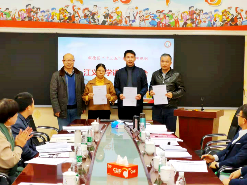 12月16日下午,江義中學(xué)民族融合廳內(nèi),來自順德區(qū)教育發(fā)展中心的鄧國強(qiáng)主任、李高程主任和楊艷冬博士,來自龍江豐華中學(xué)的郭友明副校長,來自勒流街道教研室的祝小波老師,以及來自江義學(xué)區(qū)各校的校長、教導(dǎo)主任齊聚一堂,為江義中學(xué)的兩個課題結(jié)題、三個課題開題展開論證研討。