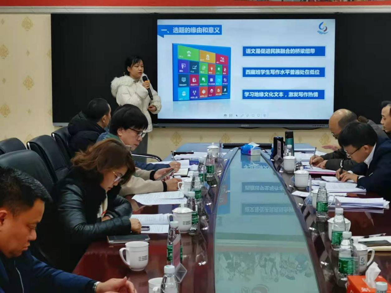 龍暉匯報的課題為《內(nèi)地西藏班基于教材地緣文化文本的寫作教學(xué)運(yùn)用研究》。該課題為區(qū)立項小課題。