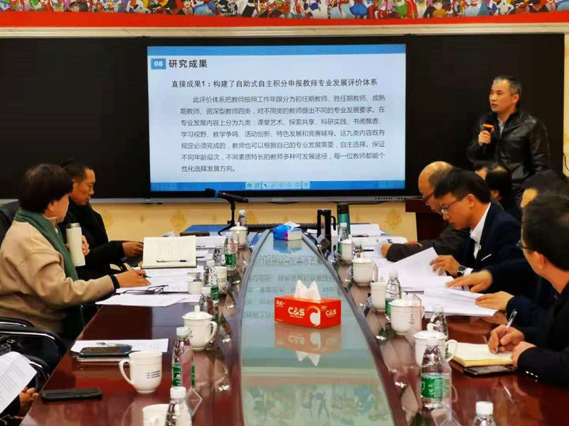 隨后由馬祥華老師匯報《學(xué)區(qū)制背景下構(gòu)建教師專業(yè)發(fā)展協(xié)同機(jī)制的實踐與研究》。該課題是由江義中學(xué)胡和秋校長主持的區(qū)“十三五”重點(diǎn)規(guī)劃課題、中國教育學(xué)會“十三五”規(guī)劃課題,研究近幾年江義學(xué)區(qū)面臨的教師專業(yè)發(fā)展和學(xué)區(qū)工作協(xié)同的問題。