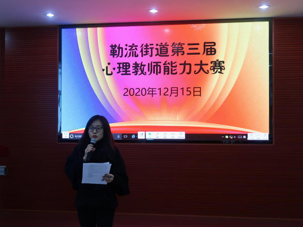 2020年12月15日,勒流街道第三屆中小學(xué)心理教師專業(yè)技能大賽在江義中學(xué),共有來自全街道中小學(xué)的17名心理健康學(xué)科教師參賽。我校劉倩怡老師獲得初中組一等獎。