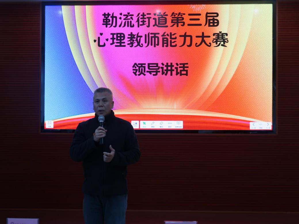 最后,勒流街道德育專干宋慶發(fā)老師發(fā)表講話,他肯定了每位選手的付出,對我街道心理教師給予厚望,期望每位心理教師關(guān)注自身的身體狀態(tài),以更飽滿的熱情和狀態(tài)投入心理健康教育工作中。