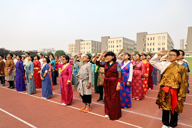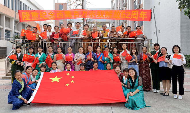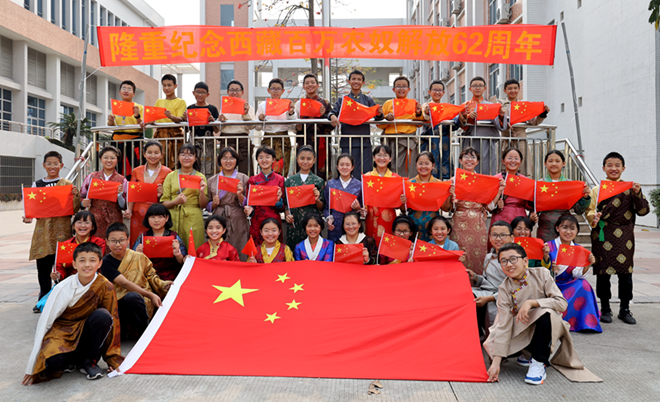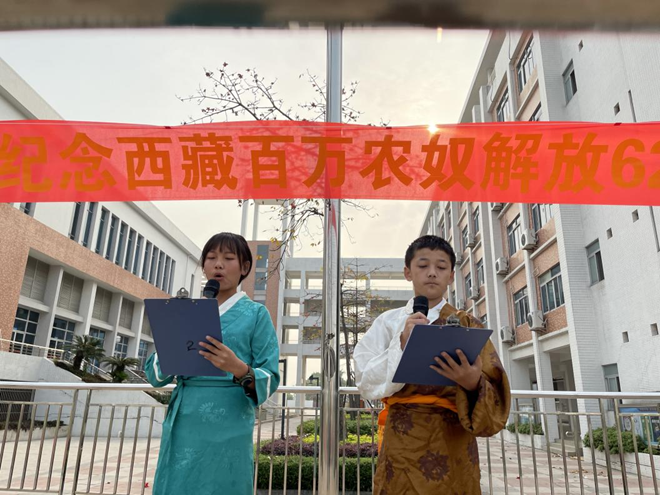 3月28日,江義中學(xué)內(nèi)地班全體同學(xué)身著傳統(tǒng)藏式服裝,齊聚國旗下,熱烈慶祝“3.28”西藏百萬農(nóng)奴解放62周年,全體內(nèi)地班師生參加此次升旗儀式。