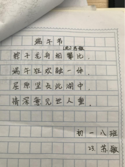 同學(xué)們撰寫以端午為主題的詩歌,字里行間都展現(xiàn)了同學(xué)們對傳統(tǒng)節(jié)日的熱愛,對美好生活的期盼。