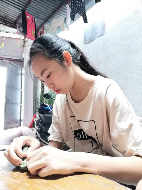 4.將粽葉包好后用準備好的繩子把它綁緊。