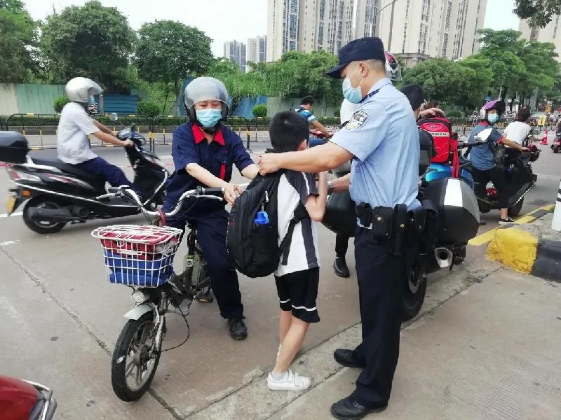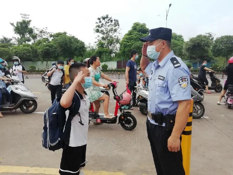 01 新地中隊(duì)民警,孩子們的平安符 容桂派出所新地中隊(duì)每天堅(jiān)持派出民警協(xié)助我校上學(xué)、放學(xué)的安全保衛(wèi)工作!特別是駐點(diǎn)的我校郭德雄警長(zhǎng)以及容桂治安聯(lián)防大隊(duì)容里分隊(duì)關(guān)展流分隊(duì)長(zhǎng)以及全體隊(duì)員,積極配合學(xué)校工作,心系教學(xué),關(guān)心學(xué)生和家長(zhǎng)的安全。郭警長(zhǎng)還親自幫孩子拿書包,指揮交通,并鼓勵(lì)心理危機(jī)得學(xué)生,是廣大駐點(diǎn)法制副校長(zhǎng)的接觸代表之一,有郭警長(zhǎng)帶領(lǐng)的隊(duì)伍來(lái)保駕護(hù)航,是我們?nèi)堇镄W(xué)孩子之福。 02 義工護(hù)暢隊(duì),孩子們的生命樹 每天晨曦初現(xiàn),校門口閃現(xiàn)著義工隊(duì)的身影,那一抹抹粉色從眼前輕盈地飄過(guò)。義工們每天提早來(lái)到學(xué)校準(zhǔn)備交通管制的工具擺放,然后分工指揮交通。就算是暴雨如注,義工們都堅(jiān)持到崗,臉上掛著慈祥安寧的微笑,迎接孩子們的到來(lái),雨水已經(jīng)從濕透的衣襟、裙角滑落,義工們還是堅(jiān)持著…… 03 網(wǎng)紅保安員,孩子們的守護(hù)神 平凡的崗位不平凡的人這就是我們的保安員叔叔。學(xué)校門口是學(xué)校的第一道防線。如何保衛(wèi)第一道防線是學(xué)校安全工作的重中之重!我校保安員每天堅(jiān)守崗位,認(rèn)真負(fù)責(zé)。 如果沒(méi)有這些平凡崗位上的不平凡的人守護(hù)在學(xué)校門口,如果沒(méi)有他們筑起學(xué)校門口的第一道防線,如果沒(méi)有他們每天的堅(jiān)持不懈,我們?cè)趺茨茏尯⒆觽兒煤米x書? 感謝這些鋼鐵城墻每天守護(hù)在這里,在這里守護(hù)著孩子們的希望,守護(hù)著國(guó)家的希望!