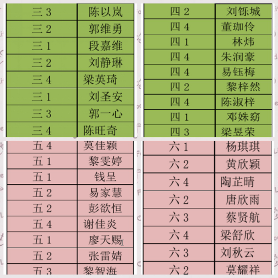 獲得表揚(yáng)獎(jiǎng)的班級(jí)是:三年2班,三年3班,四年2班,四年3班,五年2班,五年4班, 六年2班,六年3班