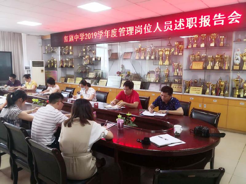 中層崗位管理人員是學校凝聚教職工力量的核心,是學校決策得以推進和落實的重要環(huán)節(jié)和有力保證。為全面、客觀、公正地反映學校中層人員的政治業(yè)務(wù)素質(zhì)和履行崗位職責情況,同時督促學校中層崗位人員成為有思想、有擔當、會干事、能干事的人。6月30日和7月10日兩天上午,紅旗中學舉行了中層崗位人員述職大會。全體行政、各部門負責人出席會議。