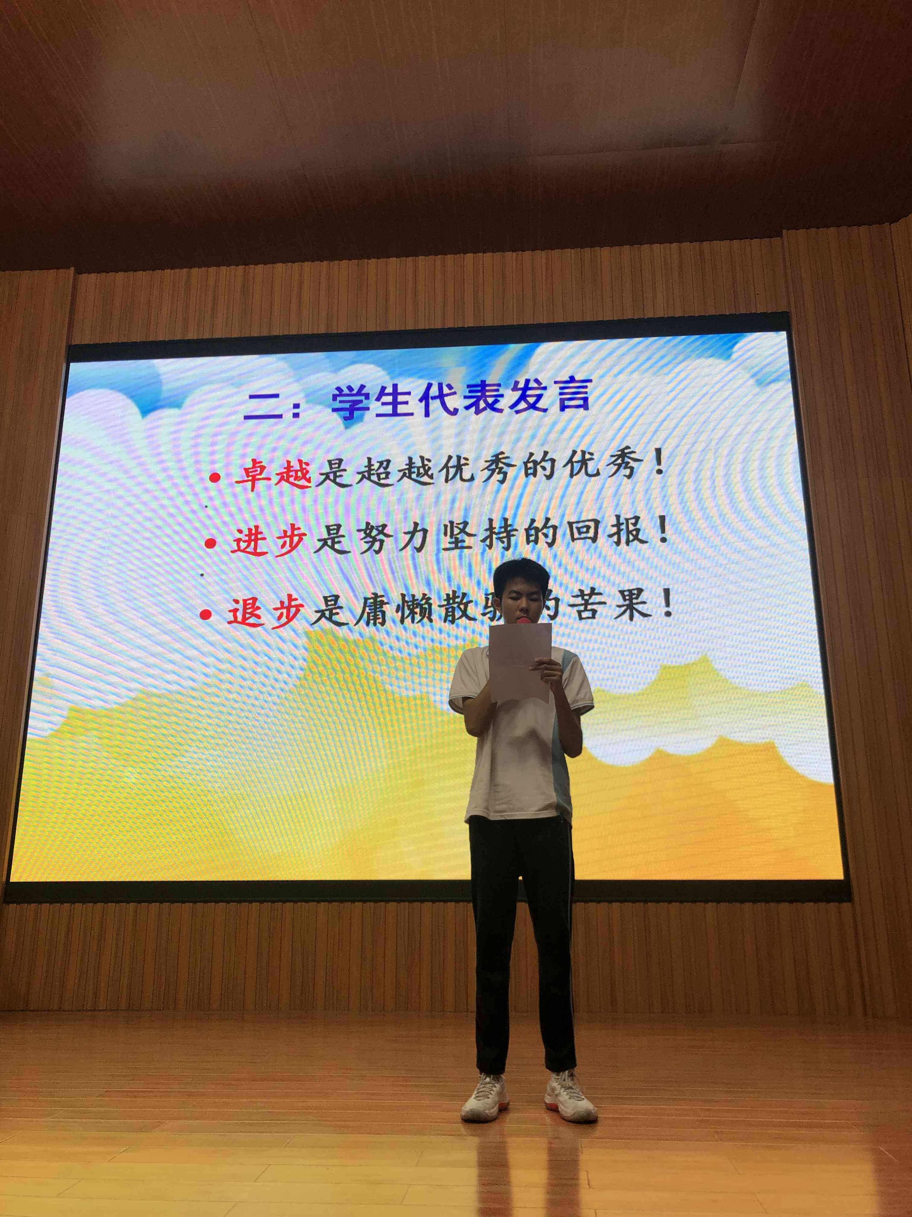 頒獎結(jié)束,由周文杰副主任發(fā)言,他首先向受到表彰的同學(xué)表示熱烈的祝賀,肯定他們優(yōu)異成績的同時,更堅信以他們的實力與水準(zhǔn)。保持不驕不躁的態(tài)度,必定會在此次中考創(chuàng)造更大的奇跡!拼搏七月,奮進全力,舍我其誰,容外必勝!