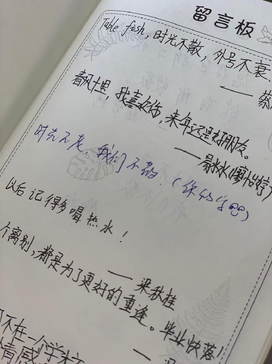畢業(yè)典禮由播放全班同學(xué)集體回憶的影像拉開帷幕,班級(jí)同學(xué)共憶往昔成長時(shí)光?!岸鲙熂恼Z”環(huán)節(jié),各科老師創(chuàng)意層出,結(jié)合學(xué)科特點(diǎn),為畢業(yè)生錄制了飽含深情的寄語視頻,將美好的祝福灑向所有即將畢業(yè)的學(xué)子。面對(duì)老師多年的教導(dǎo),學(xué)生代表為科任老師誠摯地送上鮮花及賀卡,感恩老師們的栽培。今年,南環(huán)小學(xué)為畢業(yè)生專門定制了一本“共寫溫暖時(shí)光――南環(huán)小學(xué)畢業(yè)季留言紀(jì)念冊”,并由曾慶輝校長在扉頁寫下贈(zèng)言,冊子里面,是同學(xué)之間互相留下的最真摯的祝福和對(duì)彼此最美好的祝愿。
