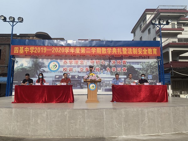光陰荏苒,時(shí)光如白駒過(guò)隙,忙碌而又充實(shí)的2019學(xué)年第二學(xué)期即將結(jié)束。為切實(shí)做好學(xué)生暑假安全教育工作,進(jìn)一步強(qiáng)化師生的安全意識(shí),確保暑假平安。2020年7月15日下午,四基初級(jí)中學(xué)2019學(xué)年第二學(xué)期散學(xué)典禮暨法制安全教育大會(huì)在學(xué)校排球場(chǎng)舉行。學(xué)校全體行政以及初一、二級(jí)全體師生參與會(huì)議。會(huì)議由鄧鈞成副主任主持。