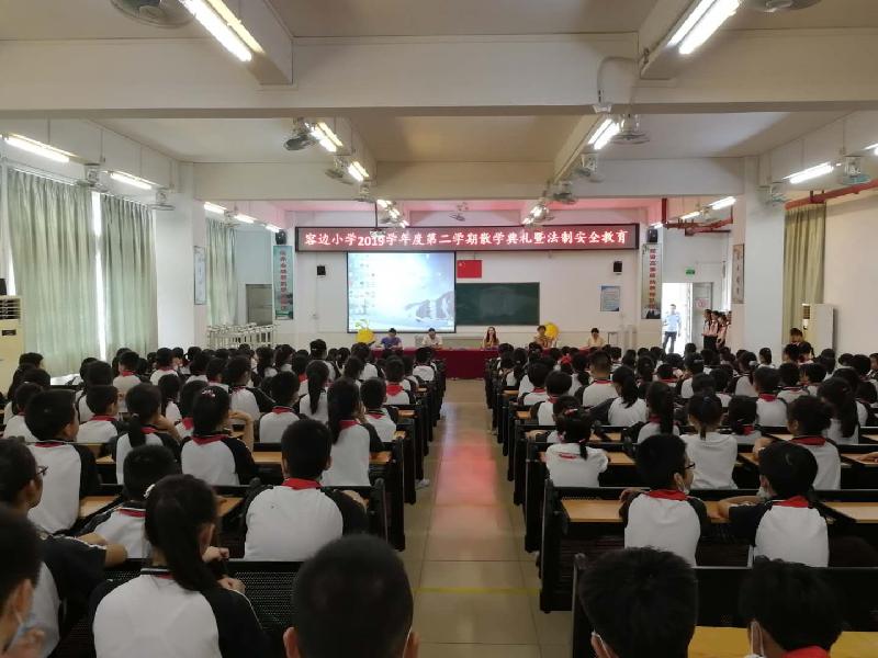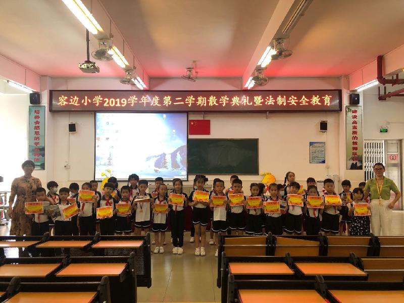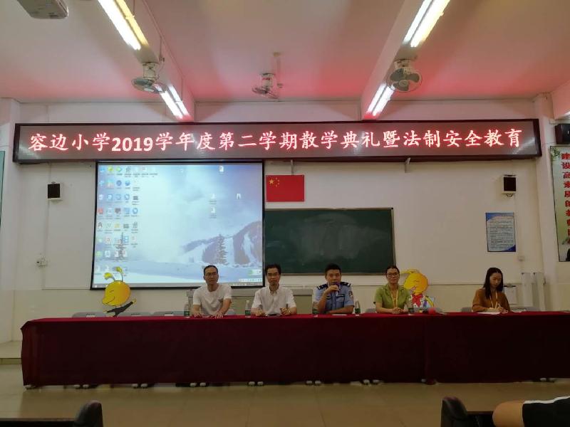 7月17日下午,容邊小學在學校電教室舉行“2019學年度第二學期散學典禮暨法制安全教育”活動。學校的全體行政、駐校法制校長傅勇警官、各班學生代表等參加了典禮活動。