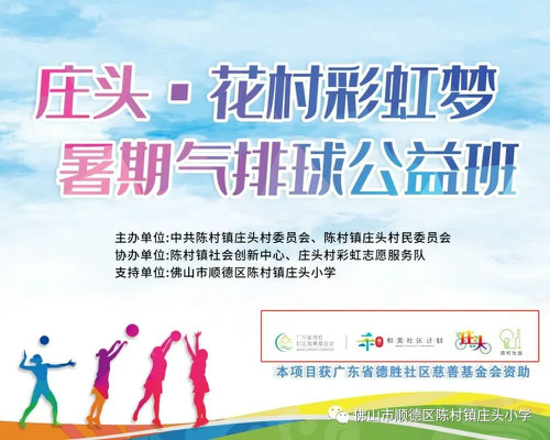 為了豐富學(xué)生的暑假生活,進(jìn)一步推廣氣排球運動項目在學(xué)校的發(fā)展,陳村鎮(zhèn)莊頭小學(xué)聯(lián)合莊頭村委會、陳村社創(chuàng)中心、莊頭彩虹志愿者服務(wù)隊舉辦了“莊頭?花村彩虹夢――暑期氣排球公益班”,培訓(xùn)對象主要是面向莊小學(xué)子以及莊頭村的孩童?;顒拥呐e辦得到了學(xué)校家長以及莊頭村民的大力支持,紛紛踴躍報名,公益班的招生通知發(fā)布后,很快就招滿了名額。