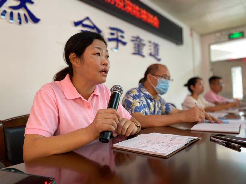 接著容山小學(xué)德育處主任劉玉華補(bǔ)充強(qiáng)調(diào)防疫期間學(xué)校采用防疫專用樓梯,開學(xué)后要帶著學(xué)生多走幾遍,特別是一年級(jí)新生;總務(wù)處陳堅(jiān)賓主任則就午餐方面的防疫提出具體要求;最后,容山小學(xué)副校長羅艷芬,書記陳錫標(biāo),教務(wù)處高梅燕主任,羅瀟主任分別對(duì)秋季開學(xué)后的一系列防疫準(zhǔn)備事項(xiàng)進(jìn)行了補(bǔ)充。