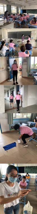 首先全校教師以年級(jí)為單位分別進(jìn)行防疫演練。演練的內(nèi)容包括: