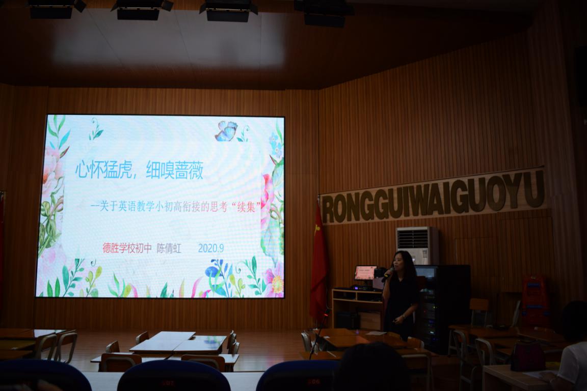 為了更好地幫助在座的小初高教師理解當前英語小初高銜接的現(xiàn)狀與潛在問題,促進銜接學段英語教學質(zhì)量的提高,來自順德德勝學校的陳倩虹老師進行了分享經(jīng)驗發(fā)言。