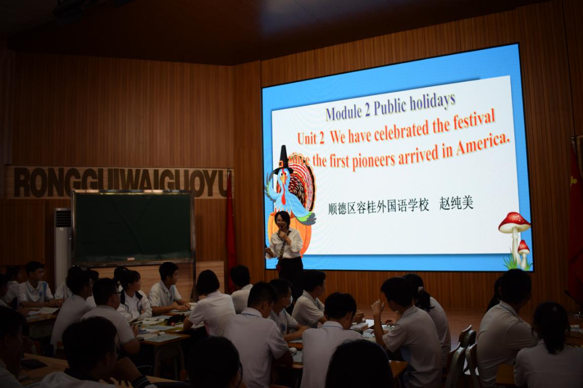 在課例展示環(huán)節(jié),由來自容桂外國語學校的趙純美老師及羅定邦中學的許冬霞老師,對初三上冊Module 2 Public holidays Unit 2這一課進行了初高中同課異構(gòu)的教學展示,分別為我們展現(xiàn)了不同的教學思維和教學課堂。