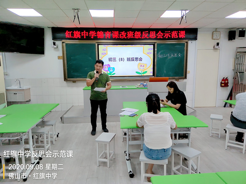 2020年9月8日下午,紅旗中學(xué)全體班主任齊聚錄播室觀摩了譚志霞老師的德育課改反思會(huì)示范課,德育處陳國佳副主任主持了課后的分享交流會(huì)。陳亞玲校長等學(xué)校主要行政領(lǐng)導(dǎo)參加了活動(dòng)。