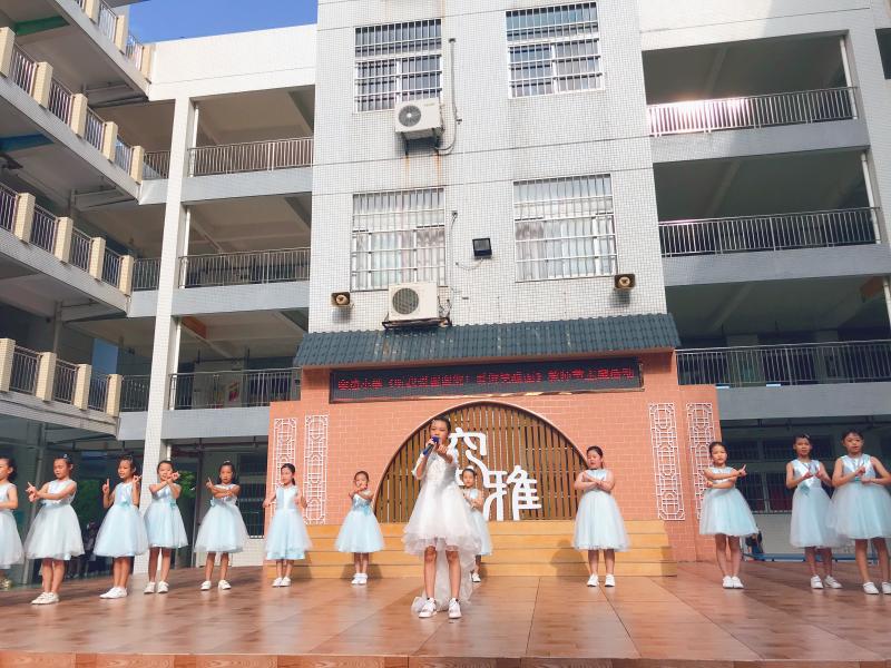 緊接著,容邊小學少先隊員的代表們用自己的歌聲感謝老師們的辛勤耕耘,她們?yōu)槿w師生帶來《聽我說謝謝您》合唱表演。當音樂響起,全場的學生也跟著一起哼唱,把對老師的愛唱給老師聽。
