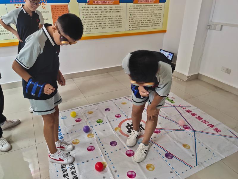 VR體驗(yàn)區(qū)和游戲互動(dòng)區(qū)內(nèi),同學(xué)們?cè)谏绻?/span>們的幫助下戴上VR眼鏡、負(fù)重袋等設(shè)備,在模擬情境中體驗(yàn)吸食毒品帶來(lái)的不良反應(yīng)。參與者時(shí)而害怕,時(shí)而慌亂,聲聲驚嘆中對(duì)吸食毒品有了一個(gè)較為清醒的認(rèn)識(shí)。