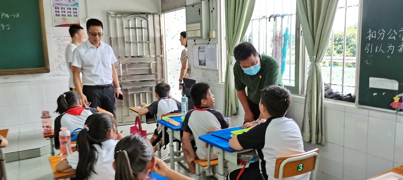 2020年9月18日上午,容桂街道教育辦公室副主任黃智宏、基礎(chǔ)教育股股長胥執(zhí)純蒞臨小黃圃小學(xué)指導(dǎo)午餐午休工作。小黃圃小學(xué)許社初校長、黃繼紅副校長、曾愛輝主任陪同檢查。