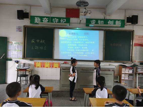 二年級的同學也在用不同的形式表達著歡慶中秋的喜悅之情和對祖國傳統(tǒng)文化的熱愛。各班利用班隊課的時間,猜謎語、講故事、吟古詩……孩子們積極踴躍參與活動,感受到了濃濃的節(jié)日氛圍。