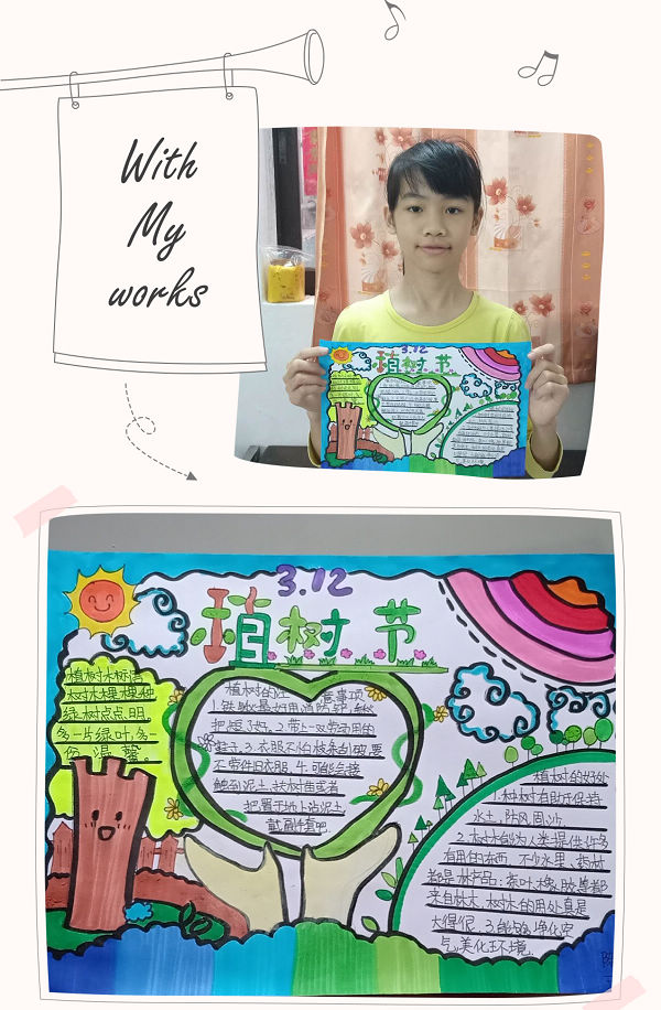 春風吹綠了枝頭上的嫩芽,吹綠了地上的小草,也吹動了同學們對春天的喜愛。同學們或拿出自己的畫筆,畫下這繁花似錦的春天;或舉起手中的鋼筆,寫上對保護“地球母親”的新倡議。