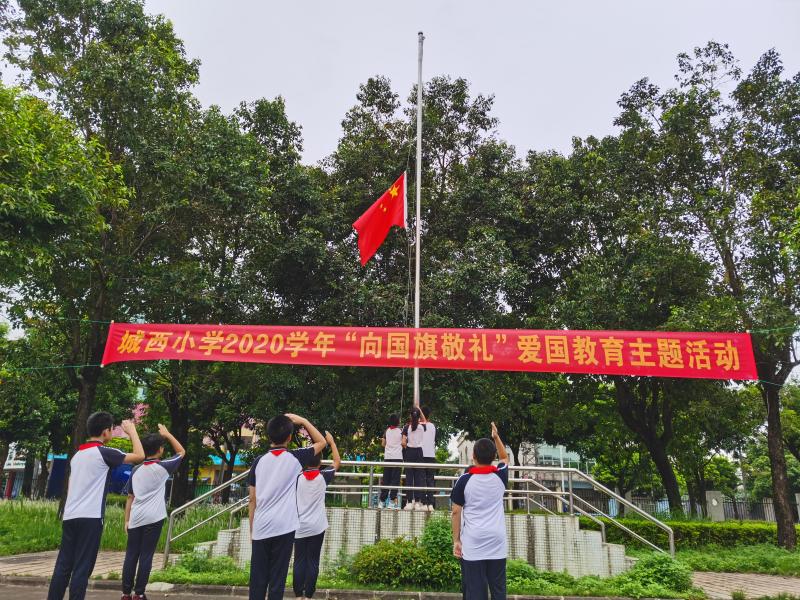 秋高氣爽,春華秋實(shí)。當(dāng)早上八點(diǎn)鐘的太陽(yáng)冉冉升起時(shí),太陽(yáng)的余暉灑落大地,我們迎來(lái)了容桂城西小學(xué)第5周升旗儀式。本次活動(dòng)六2中隊(duì)陸慧婷同學(xué)主持,主題是“向國(guó)旗敬禮”愛(ài)國(guó)教育。當(dāng)義勇軍進(jìn)行曲響起的時(shí)候,同學(xué)們肅立,敬禮,唱國(guó)歌,升國(guó)旗。